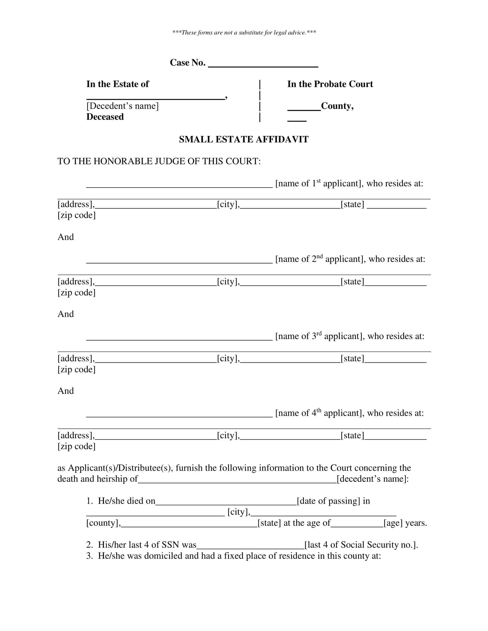 An estate should be Small sufficient for an heir to be able to use a Small estate sworn statement in the first place. In other words, the value of the decedent’s assets and personal effects need to fall below certain state-specific limits.